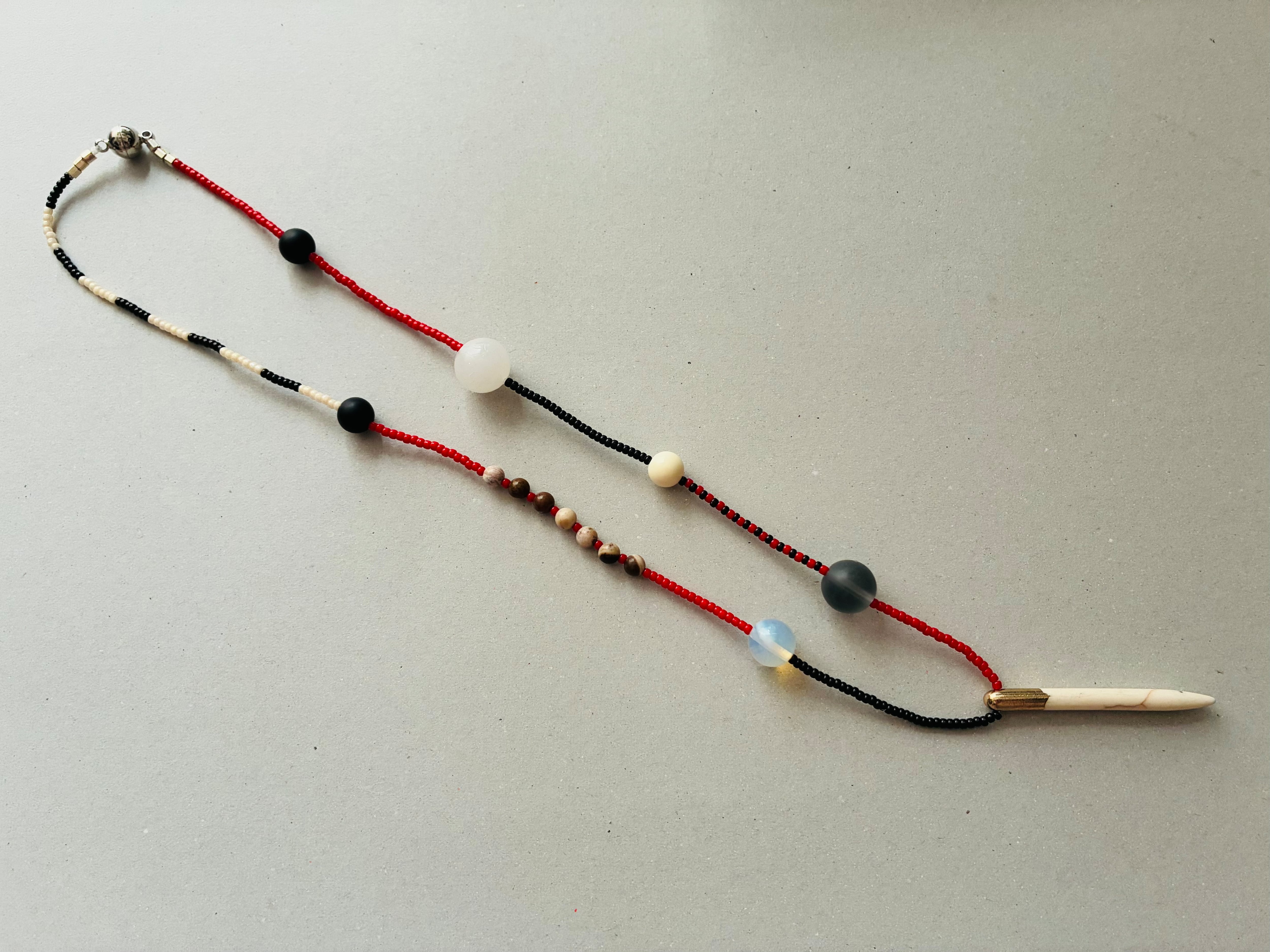 ショート ネックレス レッド×ブラック